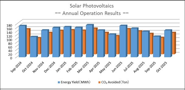 于2018年3月作为第一期开始运行拥有 1兆瓦太阳能发电设备(1,000kW),并于2023年7月继续导入第二期的1兆瓦太阳能发电设备,至此合计为2兆瓦的太阳能发电设备(2,000kW)。